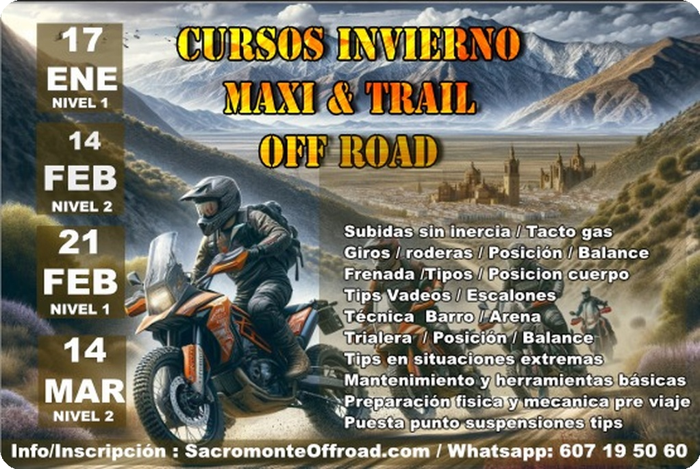 Requiere mínimo 2 días entrenando con nosotros. Tendremos tiempo de entrenar diferentes técnicas, analizar tu pilotaje y afianzar lo nuevo. Te recomendamos para evitar roturas y arañazos en tu maxitrail hacer el curso con moto de enduro .Motos de alquiler: BETA XTRAINER 300.